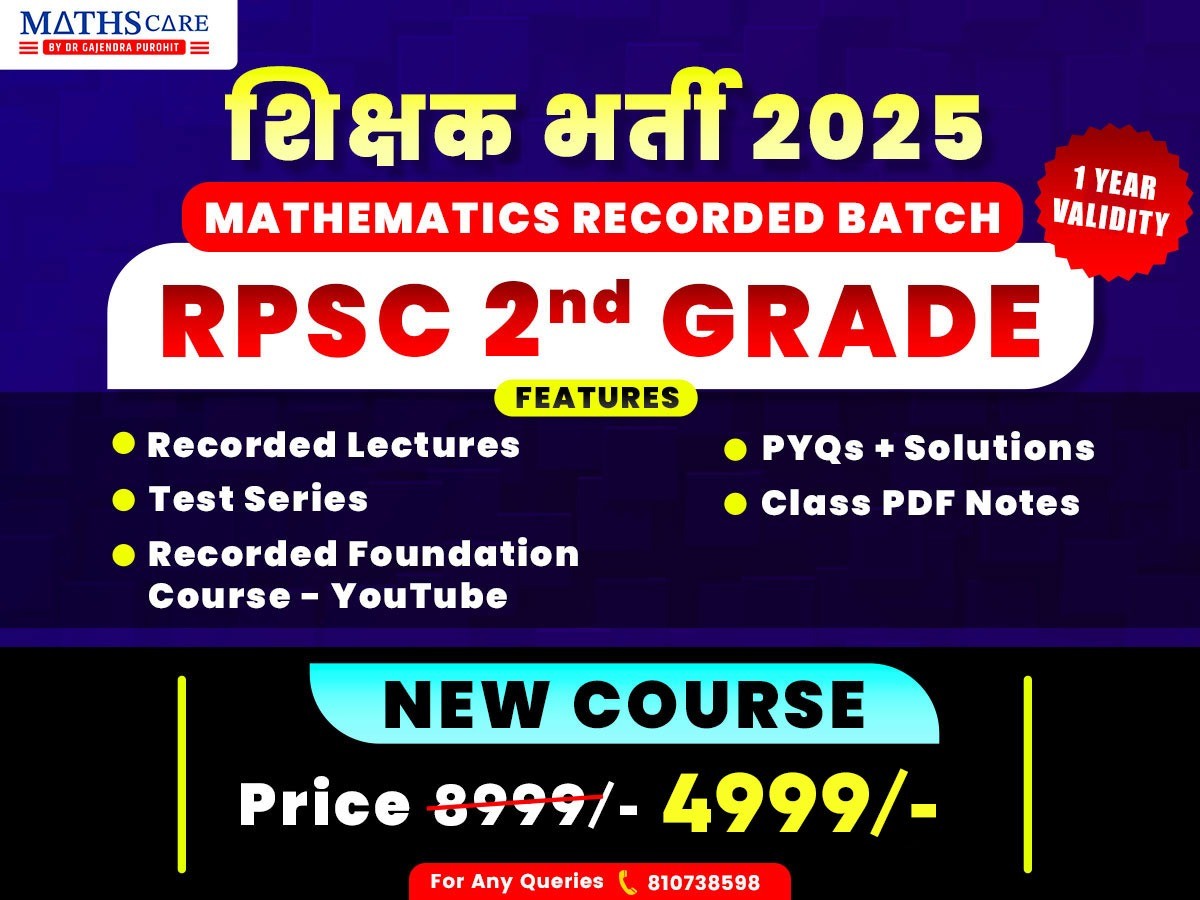 🔥 UTKARSH BATCH (RECORDED) - RPSC 2nd GRADE MATHEMATICS (SCHOOL + COLLEGE LEVEL) COURSE This batch covers classes only for RPSC 2nd Grade Mathematics. THE FEE OF THE COURSE IS NON-REFUNDABLE COURSE VALIDITY TILL EXAM DATE NOTE - LAPTOP ACCESS IS NOT AVAILABLE FOR VIDEO LECTURES IN THIS COURSE Please go through all features, terms, and course guidelines carefully before purchasing. If you have any doubts, call the official MathsCare Helpline 8107385398 🚨 Note: 1. No refund will be issued after purchase under any condition. 2. A PDF of the class notes will not be available for download as a soft copy. It will only be accessible within the application. ✅ Course Features: - We cover the mathematics syllabus of School + UG in this course. - Recorded Classes - Topic-wise Class PDF Notes (Hindi & English Both) available offline in the application - Daily Practice Problems with Solutions (Practice questions every day in Hindi & English with solutions) - Weekly Tests Regular topic-wise tests in Hindi & English to track your performance. - Full Test Series Simulated exam-like tests in Hindi & English to prepare you for the final day. - Mentorship Sessions with GP Sir Live sessions are taken timely by GP Sir for academic guidance, strategy, and doubt resolution. 🎁 Free Access Includes: - Foundation Course Full access to live foundation classes + pre-recorded YouTube playlists. - Complete Test Series Full syllabus test series for self-assessment. ❌ Not Included in This Batch: To avoid confusion, the following are NOT part of Utkarsh Recorded Batch - RPSC 2nd Grade (School + UG Level): - Abhyas Batch - Crash Course 📅 Course Validity - 1 year validity To continue access beyond this date, an extension fee will apply. ⚠️ Before You Purchase: Please Read The Following Carefully 📌 Device Policy (Strictly Enforced): - The course can be accessed only with ONE registered mobile number. - Only one mobile device and one laptop device are allowed per student. - These devices are locked & registered at the time of joining. - You can use only one device at a time. To switch devices, Please Contact us. 🚫 Strict Rule Against Misuse Sharing course content (PDFs, videos, tests, etc.) or login access with others will lead to immediate permanent blocking of your account, without warning or refund. ⚠️ Code of Conduct: Any misbehavior with team members or students, or involvement in malpractices (cheating, spamming, misuse of group resources, etc.) will result in immediate removal from the course without discussion. 📃 Terms & Guidelines: - Once purchased, no refund will be provided under any condition. - All features, rules, and schedules are set by the company and are subject to change or update anytime for improvement. 💬 Doubt Support: - Dedicated WhatsApp groups will be created for your batch. - Teachers will hold timely doubt classes and discussions to ensure clarity and support. 🔒 Login Access & Technical Policy - Login issues due to students' personal device problems, poor internet, app updates, or expired device tokens will not be considered as grounds for extension or refund. - Students are responsible for keeping their apps and devices updated to the latest versions and clearing cache if needed. - Temporary technical glitches are resolved within 24–72 hours and should not be considered as a defect or reason for a refund. 🕒 Class Schedule & Changes Policy - The class schedule may be changed or updated as per teacher availability or academic needs. - If any class is missed by the student, recordings will be available. No extra class will be rescheduled for individual students. - If a teacher is unavailable, the class may be rescheduled or taught by another qualified educator. 📬 Communication Disclaimer - All official communication will be done via the MathsCare App, Support Calling & WhatsApp batch groups. - MathsCare is not responsible for missed updates if students have muted/left the group or used the wrong contact details. 🔧 Platform Update/Content Availability Clause - Some features or layouts may vary due to platform updates or app version changes. Content availability will remain intact within your active validity. - In case of an app update, students must reinstall or update the app manually to continue accessing it. - In few emergency cases, recorded lectures could be provided to the students for topics. For the Windows version, the following are required: 8 GB RAM, Windows 10, updated Chrome Browser, Stable internet connection ✅ Language/Medium Clarification The medium of instruction is English with Hindi explanation (Hinglish) 📞 Need Help? 📲 Contact us at the official student helpline number 8107385398 before purchase for any clarifications. This is the official and complete course description of Utkarsh Batch Recorded - RPSC 2nd Grade (School + UG Level) By enrolling, you confirm that you have read and accepted all of the above terms.